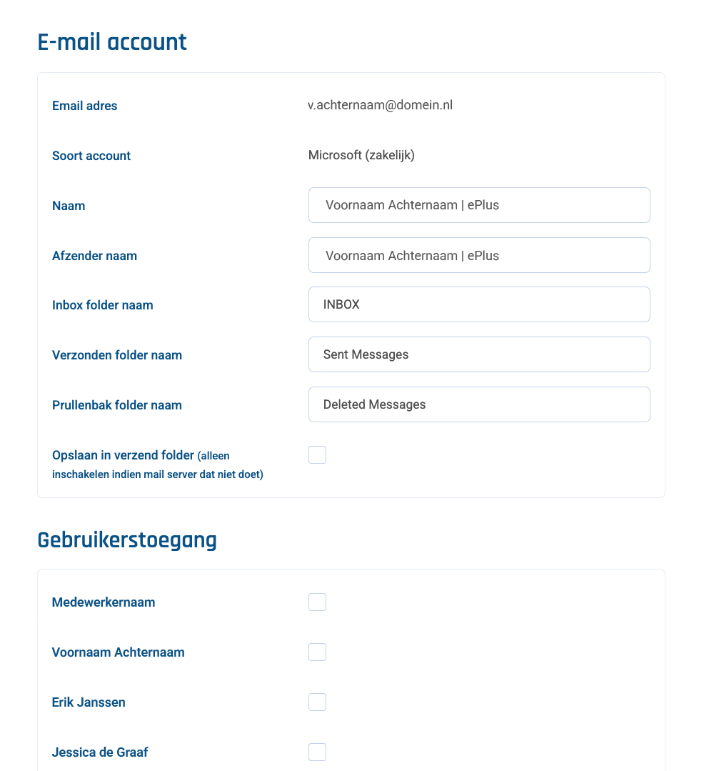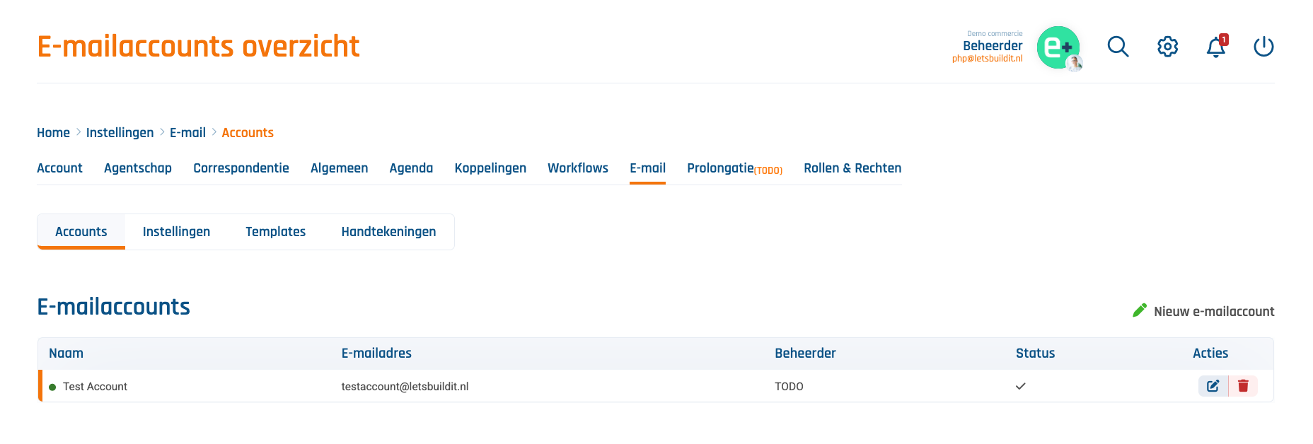 Zodra je op “Opslaan” klikt wordt de koppeling gemaakt en kan je de mailbox bekijken onder “E-mail” en zullen mails verstuurd worden vanaf je eigen account.
